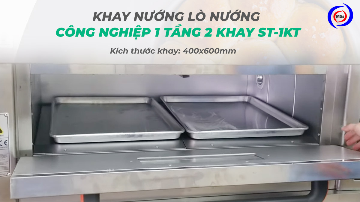 Lò nướng điện công nghiệp 1 tầng 2 khay ST-1KT là thiết bị nướng bánh chuyên dụng cho các tiệm bánh, quán ăn,... giúp nướng bánh mì, bánh ngọt, bánh bông lan, thịt cá, rau củ quả,... một cách hiệu quả và tiết kiệm thời gian.