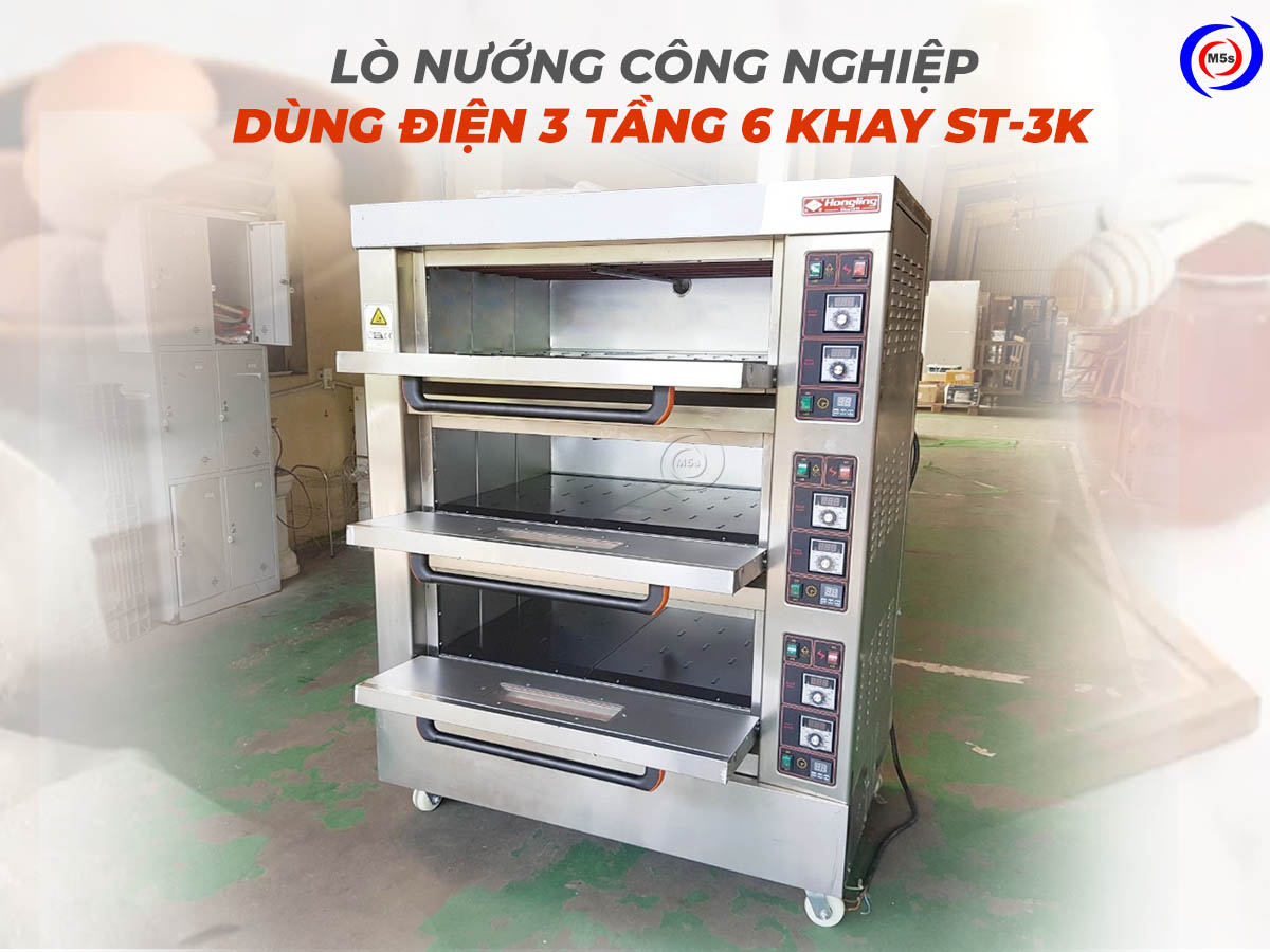 Lò nướng bánh công nghiệp 3 tầng 6 khay ST-3K là một thiết bị nhà bếp đa năng, hiệu quả, giúp đáp ứng được nhu cầu nướng bánh hoặc thực phẩm tại các cơ sở kinh doanh.