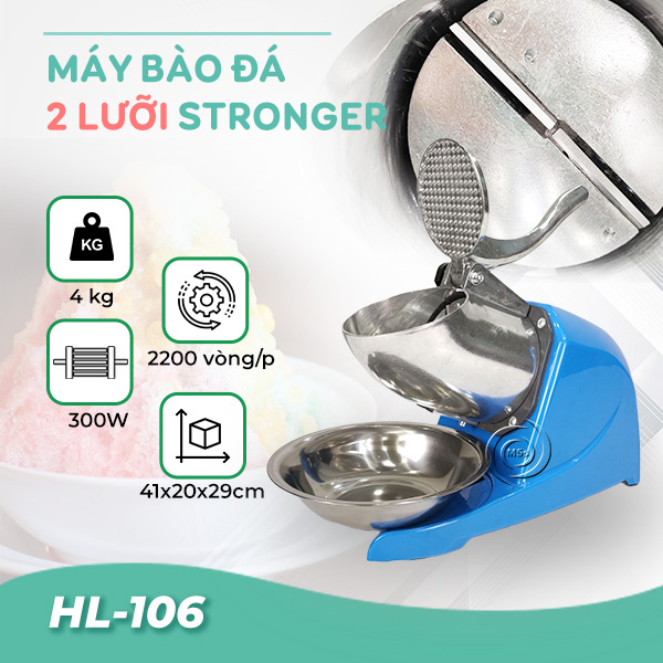 Máy bào đá 2 lưỡi Stronger HL106 là công cụ cực kỳ hữu ích trong gia đình, quán kinh doanh đồ uống,...Nếu bạn có nhu cầu mua sản phẩm thì hãy gọi cho M5s qua hotline để được tư vấn miễn phí nhé!
