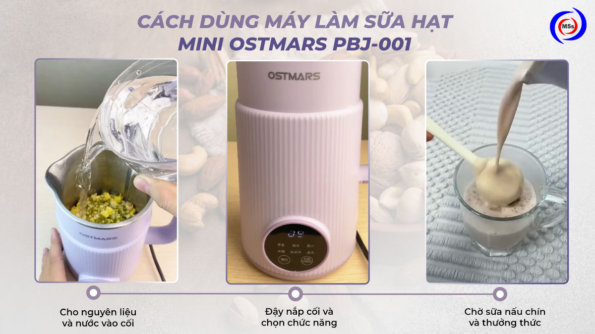 4. Cách nấu sữa hạt bằng máy xay nấu sữa hạt mini Ostmars không lọc bã