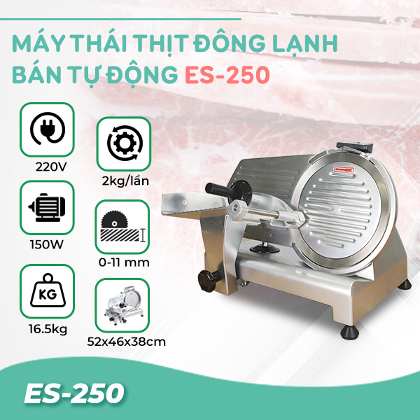 - ES-250 sử dụng được cho cả các loại thịt đông lạnh, giò chả hay những loại thịt nguội. Bạn cũng có thể sử dụng chúng để thái lát mỏng các loại rau củ như cà rốt, củ cải,... vô cùng tiện lợi.