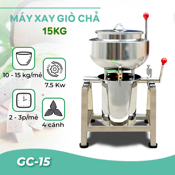 Máy xay giò chả 15kg là dòng máy công nghiệp công suất lớn chuyên sử dụng cho các cơ sở sản xuất giò lụa quy mô lớn hoặc đồ ăn chay,... Nếu bạn cũng đang có ý định tìm mua máy xay chả lụa 15kg thì hãy tham khảo chi tiết thông số kỹ thuật cũng như những ưu điểm của máy ngay bên dưới đây cùng M5s nhé.