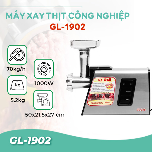 Máy xay thịt công nghiệp gali GL-1902 là thiết bị dùng để xay nhuyễn thịt và các loại thực phẩm khác trong các gia đình hoặc cơ sở chế biến thực phẩm quy mô vừa và nhỏ. Nếu bạn đang muốn sở hữu thiết bị cho không gian bếp của mình thì hãy cùng tìm hiểu chi tiết về mã máy ngay bên dưới đây nhé.