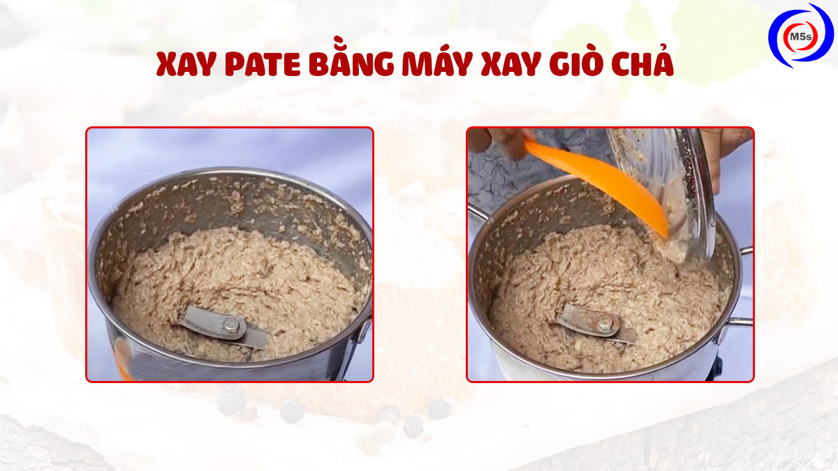 M5s khuyên bạn: Pate cần có độ nhuyễn mịn đồng đều mới đạt độ ngon chuẩn vị. Vậy nên bạn nên sử dụng các thiết bị xay có công suất lớn để đảm bảo độ nhuyễn chẳng hạn như máy xay giò chả hoặc máy xay thịt.