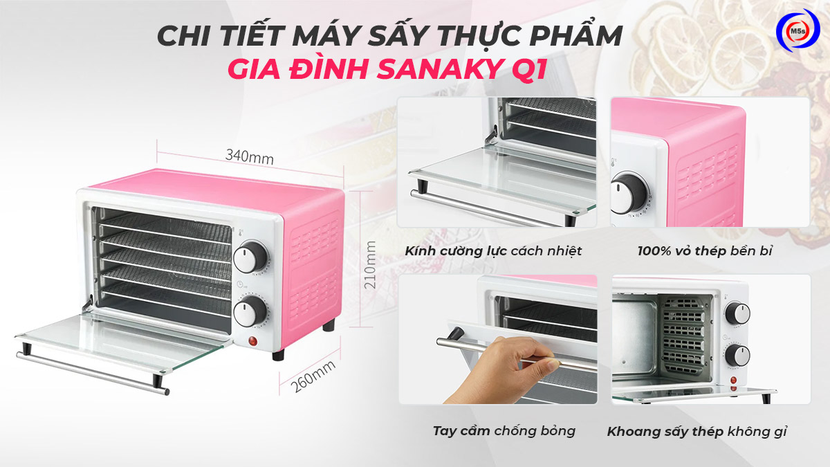 Máy sấy thực phẩm Sanaky Q1 là lựa chọn hoàn hảo cho hộ gia đình hoặc cơ sở kinh doanh nhỏ lẻ, đáp ứng nhu cầu sấy 3–5kg thực phẩm mỗi lần.